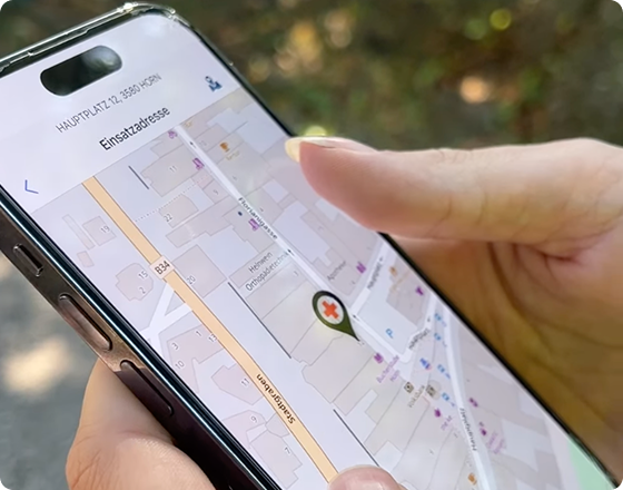 Gleichzeitig wird ein priorisierter Sprachanruf an eine speziell für App-Notrufe reservierte Rufnummer ausgelöst – für eine rasche und gezielte Hilfeleistung.