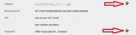 Ja, sowohl Patientendaten als auch der Hausarzt können geändert oder ergänzt werden. Klicken Sie dafür einfach auf das Symbol rechts ..