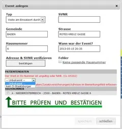 Für die Abrechnung ist der sogenannte Hauptversicherte maßgeblich. Beim Anlegen oder Bearbeiten eines Events wird bei der Eingabe der Sozialversicherungsnummer kontrolliert, wer der Hauptversicherte ist und dieser muss dann auch ausgewählt werden.