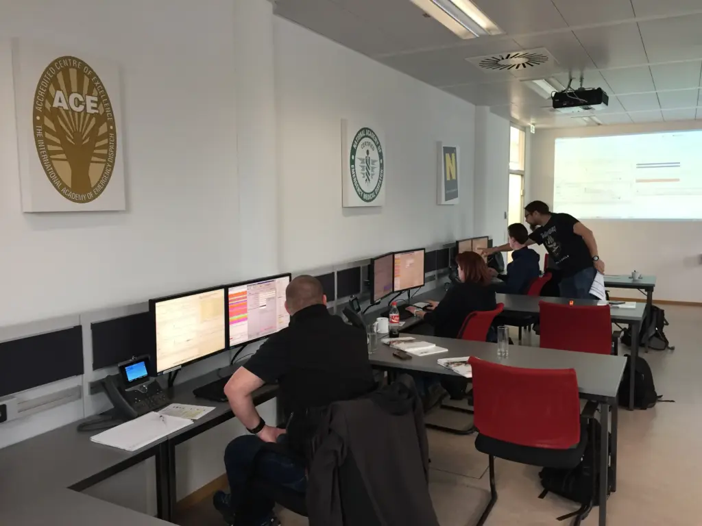 Am Standort Sankt Pölten stehen uns zwei vollwertige Ausbildungsleitstellen zur Verfügung. Durch die innovative Tischanordnung ist sowohl theoretischer Frontalunterricht, als auch gleichzeitig eine praktische EDV-Schulung auf Mehrbildschirmplätzen möglich.