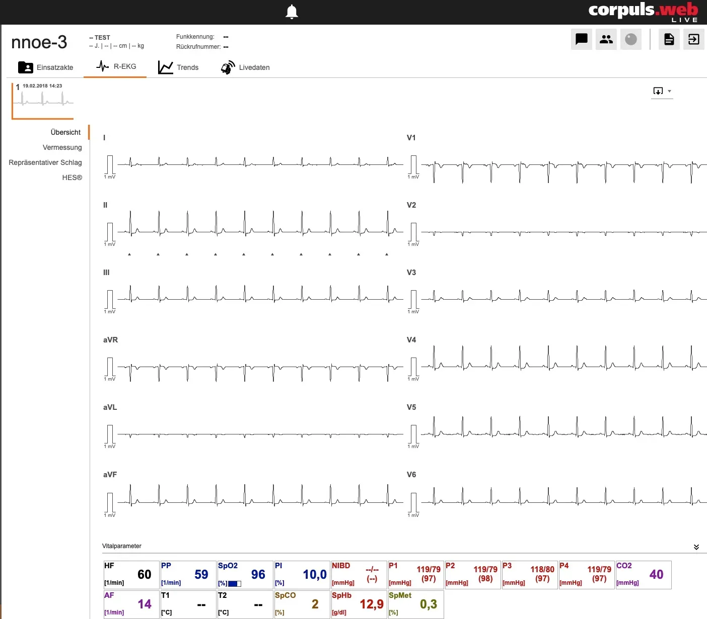 In der browserbasierten Applikation corpuls.web LIVE werden vom Rettungsdienst erhobene medizinische Daten des EKG Gerätes vom Einsatzort in Echtzeit in die Kliniken übertragen. Anhand der Daten können die Spezialisten in der Klinik gemeinsam mit dem Notarzt vor Ort die optimale Versorgungsstrategie entwickeln.