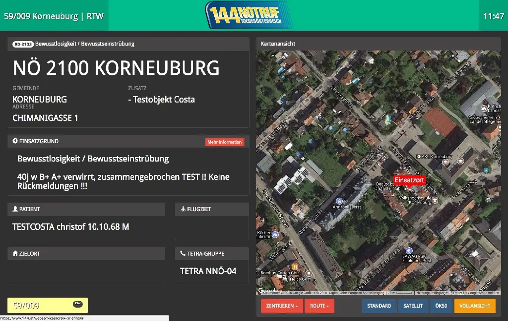 Wichtig ist, genau zu lesen, was beim Aufrufen von www.144.at/webservices/crew-briefing am Bildschirm angezeigt wird und es auch so zu befolgen (vor allem die Anweisung, welche Daten wie zu übermitteln sind)