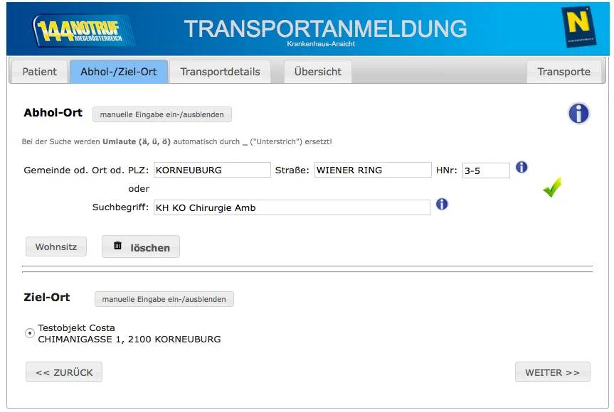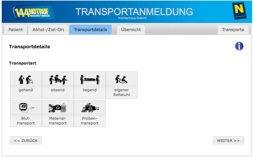 Die Online-Transportanmeldung ist nur durch ein Krankenhaus, ein Pflegeheim, eine Ordination oder eine Rettungsdienststelle möglich. Privatpersonen melden Krankentransporte ausschließlich telefonisch oder via LeoChat.