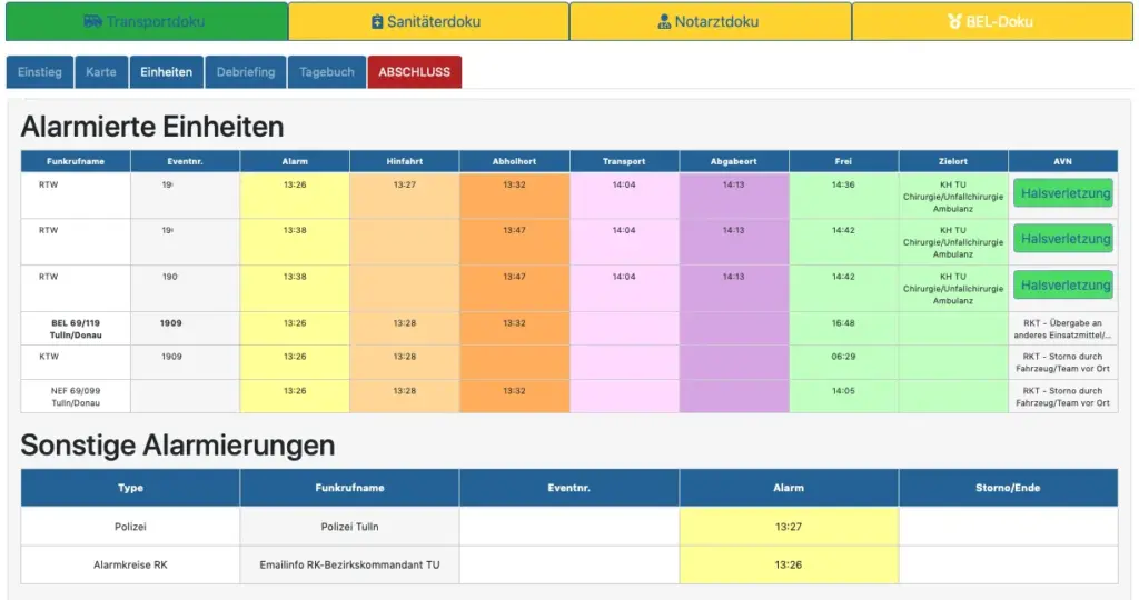 Eine spezielle Einheitenübersicht hilft den Überblick zu bewahren und es kann für alle beteiligten Ressourcen mittels AVN NÖ das jeweilige Zielkrankenhaus gebucht werden.