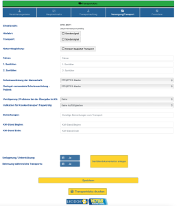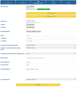 Dokumentiert werden hier auch eine eventuell eingesetzte Schutzausrüstung und etwaige Probleme bei der KH-Übergabe bzw. fragwürdige Indikationsstellungen für einen Krankentransport.