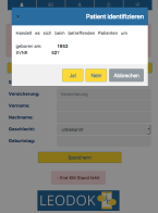 Selbst wenn die Patientendaten bereits in der Leitstelle bekannt sind, muss der Patient als solcher identifiziert werden, d.h es muss kurz bestätigt werden, dass es sich um die betreffende Person handelt.