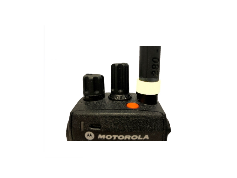 Mit den bunten Gummiringen werden die Funkgeräte unverwechselbar gekennzeichnet, und können so auf einfache Art in Gruppen zusammengefasst oder als andere taktische Einteilungen optisch erkennbar gemacht werden.