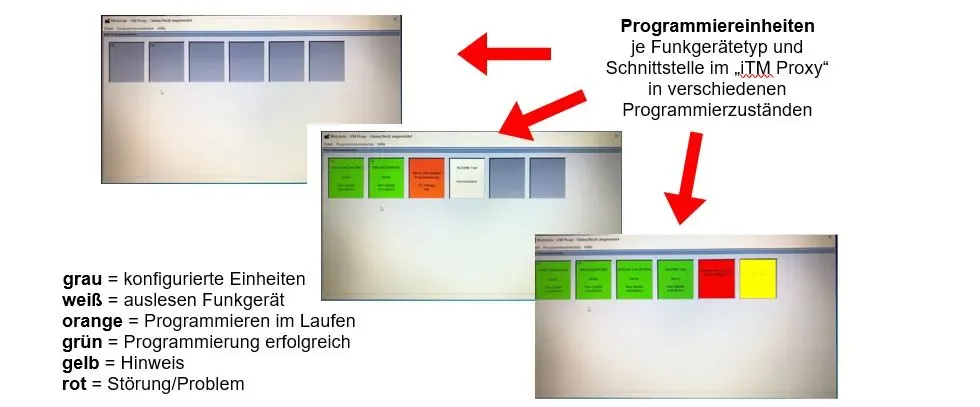 Die Programmierung der Funkgeräte erfolgt mit dem iTM Proxy im „Online Modus“, der bereits automatisch beim Start der App diese Online-Verbindung aufbaut. Damit holt sich das Notebook immer die aktuellen Programmierjobs vom Server für das angesteckte Funkgerät, und spiegelt nach der Programmierung auch die aktuellen Funkgerätedaten wieder zum Programmierserver zurück.