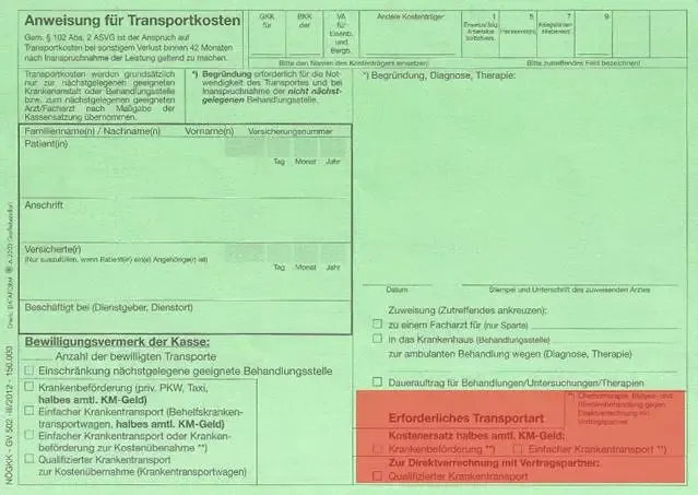 Müssen Sie wegen Ihres Gesundheitszustandes mit der Rettung transportiert werden, stellt Ihnen Ihre behandelnde Ärztin oder Ihr behandelnder Arzt eine „Anweisung für Transportkosten“ aus.